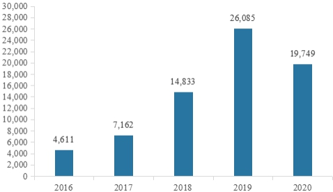 根据上述统计数据,我国环境空气的整体质量状况仍不容乐观。为了保持空气质量的持续改善,国家在大气污染防治领域的投入也在逐年增加。2016年以来,我国环境空气在线监测设备销售数量保持了较快增长,从2016年4,611台/套,增长到2020年的19,749台/套,复合增长率为43.86%。