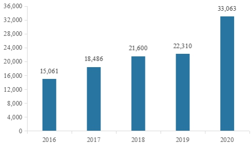2)废气污染源在线监测领域:废气污染源排放是影响我国空气环境的最主要因素,同时也是我国实施空气环境监控和治理的首要目标。2016年以来,我国烟气监测设备销售数量保持持续增长,从2016年15,061台/套增加至2020年的33,063台/套,复合增长率为21.72%。